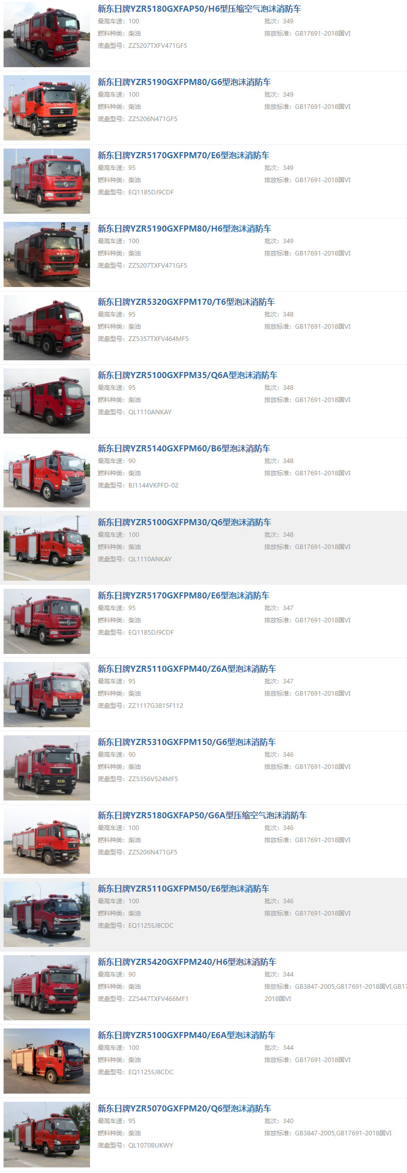 截止到目前汽車公告352批次的公示方案,我公司一共有16款泡沫消防車公告。